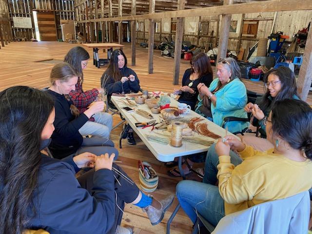 The bi-monthly basket circle offers a way to connect with practices of our ancestors, and to create with natural materials in community. Our focus for Spring 2023 and through 2024 was on coil basketry. We learned about the gathering and processing of materials such as pine needles and kelp, as well as a variety of stitches used to construct the baskets. We began 2025 working with Tule. In our first class, we made Tule dolls, Tule mats and cordage! We will continue working with tule in April and June. Please get in touch if you are interested in joining us!